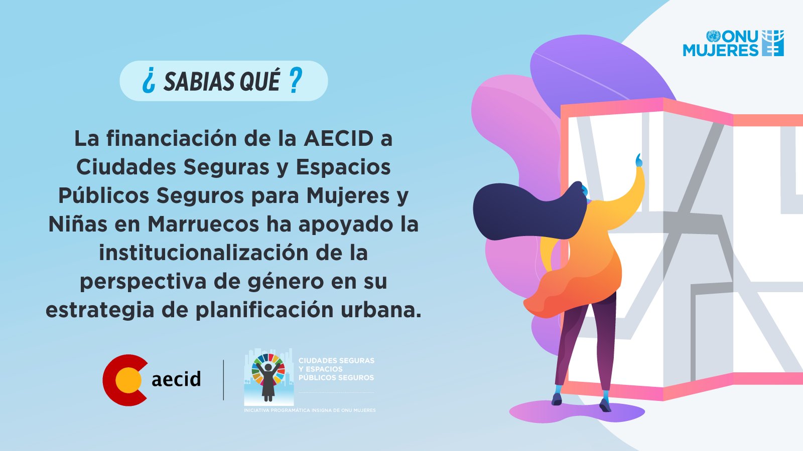 Bajo los lineamientos de la cooperación internacional, la AECID invierte en proyectos que buscan eliminar la violencia de género a través de acciones específicas y de manera transversal en todos los sectores de la cooperación. Entre los ejemplos destacados, se encuentra la Iniciativa Global “Ciudades Seguras”, liderada por ONU Mujeres, que diseña, implementa y evalúa herramientas, políticas y enfoques integrales para prevenir y responder al acoso sexual y otras formas de violencia sexual contra mujeres y niñas en los espacios públicos.